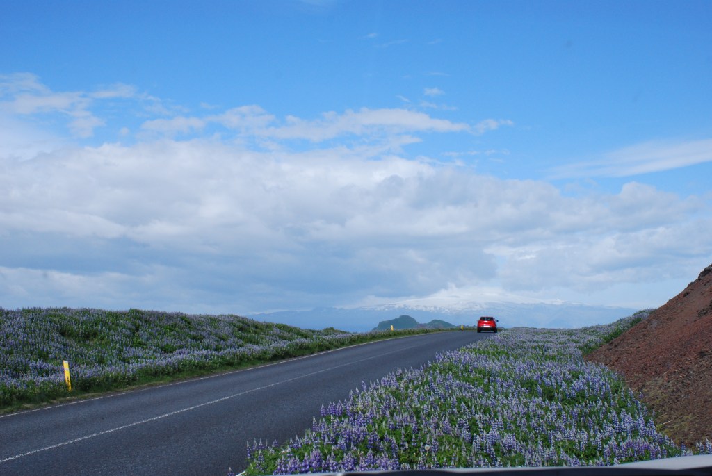 Purple stalks of Lupine carpet Iceland